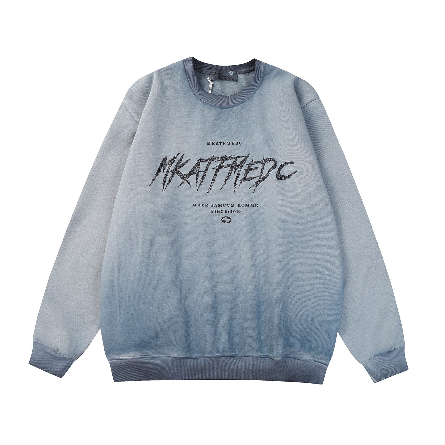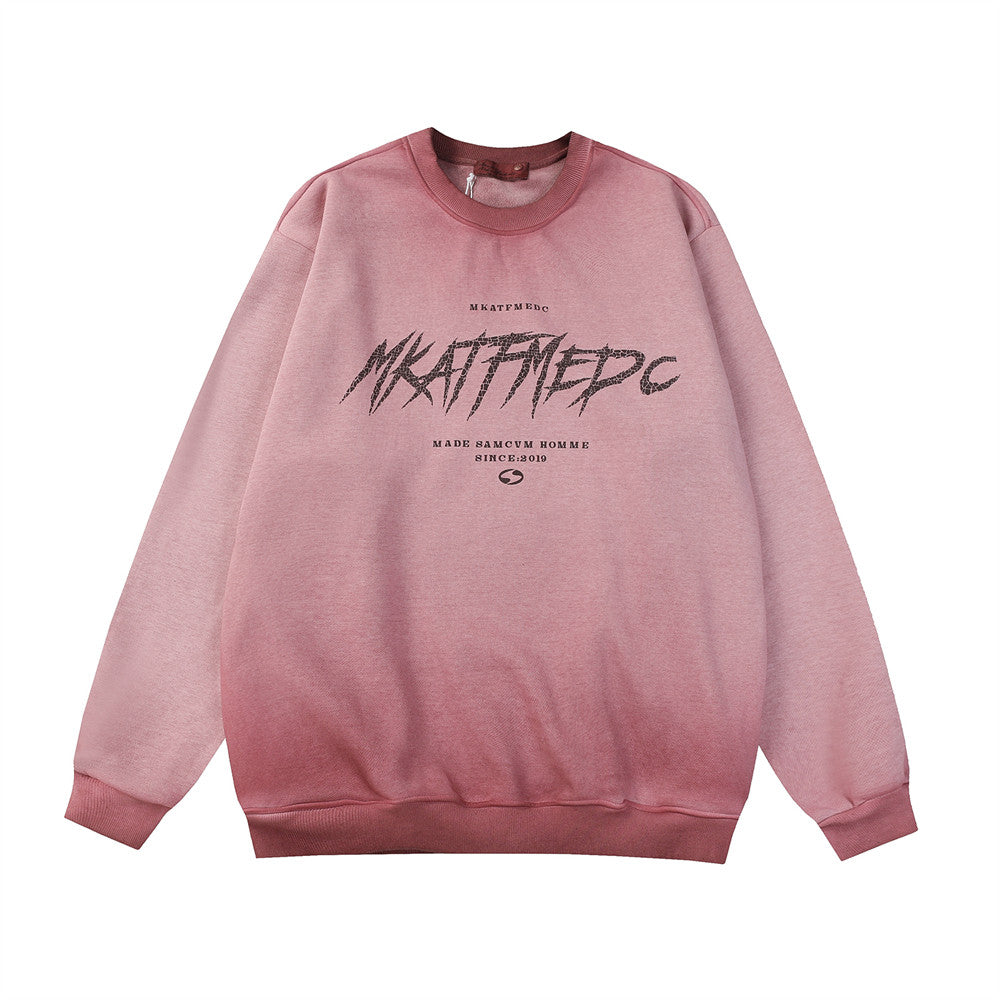 Gradient Tie-dye Round Neck Fleece-lined Sweater Men