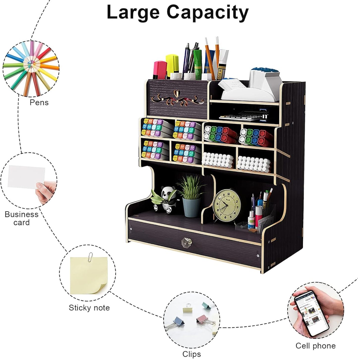 Spacious storage space and compartment design, can make your desk stationery organized in an orderly manner, find items at your fingertips, bid farewell to the messy desktop.