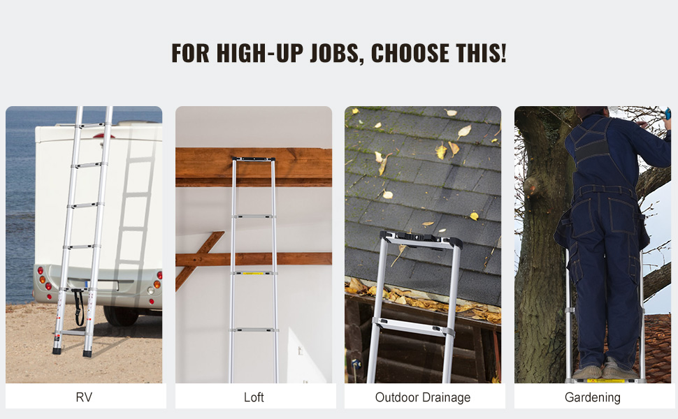 - Versatile Design: The telescopic ladder allows for manual height adjustment, fully extending to 20.3 ft and retracting to a compact height of 3.7 ft, making it perfect for various tasks, from indoor projects to outdoor maintenance, all while ensuring easy storage and transport.
