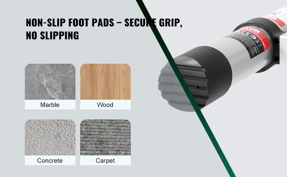 To ensure your safety and prevent floor scratches, the bottom is equipped with foot pads that provide excellent grip and are suitable for various surface types, such as marble, wood, concrete, and carpets.