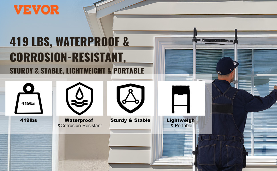 - Stable and Durable: Made from robust aluminum with aluminum connectors for enhanced durability, this ladder supports up to 419 lbs, meeting various home and commercial needs and providing peace of mind during elevated tasks.